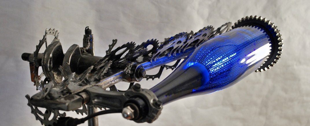 Occasionally I have an idea in mind when I switch on the welder, other times all I have is a part. When I found this projector lens in a box I knew I had something, but it took a couple of welding rods to figure out what it was. Once the basic elements were in place, … Continue reading Dragon Light