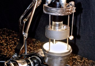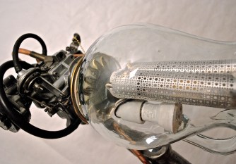 They say that beauty is in the eye of the beholder, what I try to do is widen the audience. This lamp originated with an espresso machine piston and a brass toilet tank valve, elements that were originally hidden in their intended operation. I used the espresso piston to hold the lamp socket, and set it … Continue reading Ignition Lamp