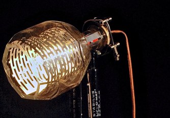 When I started making art, my most used tools were the welder and the angle grinder. As I broadened the variety of materials I work with however, I occasionally come up with an idea that hardly use the welder at all. This little lamp utilizes a cut bottle that’s been joined to a glass electrical … Continue reading Suspended side table Lamp