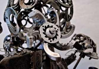 By far the longest project I’ve undertaken, this statue has been in process for close to four years. What started as a small bush of worn out coffee grinding burrs in NY; in TX has grown steadily to include more than 150 burrs, stand roughly 40″ tall, and incorporate multiple spinning canopies and flowers. Though less intricate … Continue reading Cooper’s Coffee Burr Tree